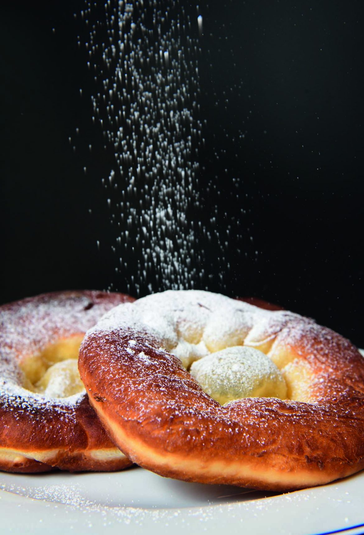 Germ mit etwas Zucker verbröseln. Der Germ verflüssigt sich. Mit den restlichen Zutaten zu einem geschmeidigen Teig kneten. Den Teig um das doppelte Volumen aufgehen lassen. Den Teig zusammenschlagen, auswalken bzw. flachdrücken und mit einer runden Form (z.B. Tasse) Kreise ausstechen. Diese zu runden Kugeln formen. Aufgehen lassen. Backfett erhitzen. Die Teigkugeln zu Fladen ziehen. Beim Ziehen soll ein Rand entstehen, in der Mitte soll der Teig sehr dünn sein. Vorsichtig in heißes Fett einlegen. Die dünne Teigmitte soll sich aufplustern und ein „Schüsserl“ bilden. Beidseitig goldbraun backen. Abtropfen lassen und mit Staubzucker bestreuen.